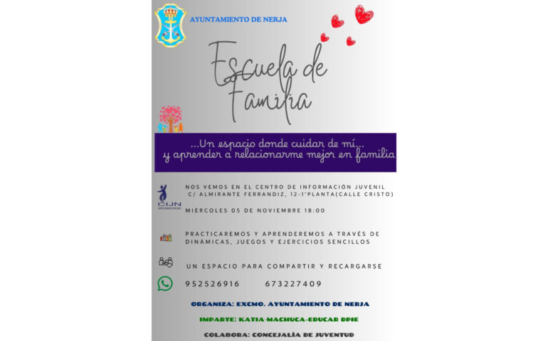 La Concejalía de Juventud te invita a participar en una nueva sesión de la Escuela de Familias, que tendrá lugar mañana, martes 5 de noviembre, en el Centro de Información Juvenil.